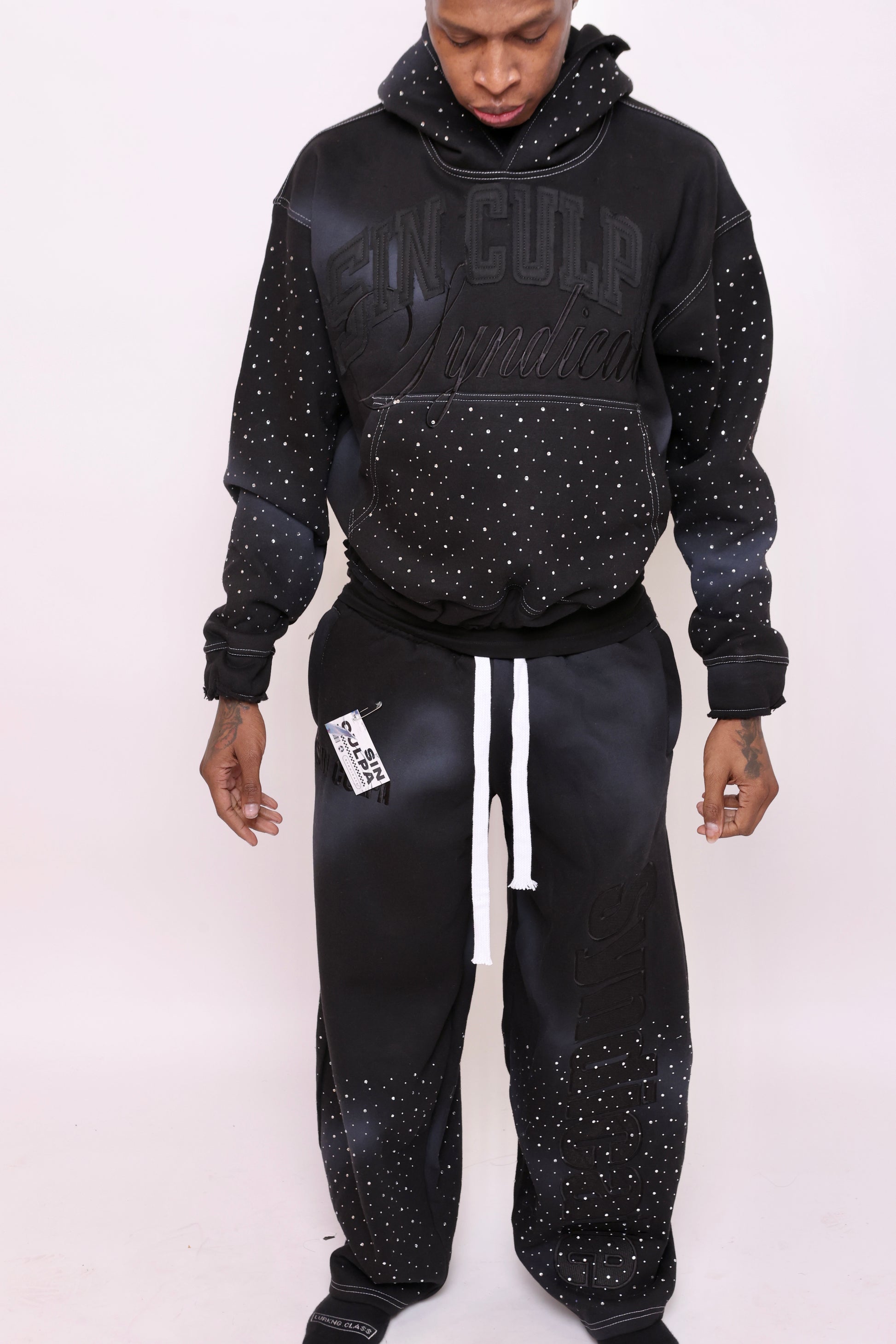 Crafted from 100% cotton heavyweight fabric, the Black Syndicate Set delivers premium comfort with a structured feel. Featuring a cropped pullover hoodie paired with wide-leg pants, this set blends modern streetwear with everyday wearability. Designed to fit true to size for a confident, effortless look.